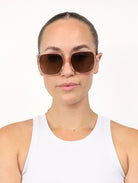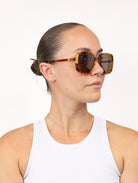 Everly, a vintage inspired shape that takes on a modern approach to the classic over-sized frame of the 70's. Crafted from glossy acetate, this soft square silhouette contrasts with the thin and feminine temples to add drama to any look. Get transported back in time with the Everly sunglasses, from Bask Eyewear.